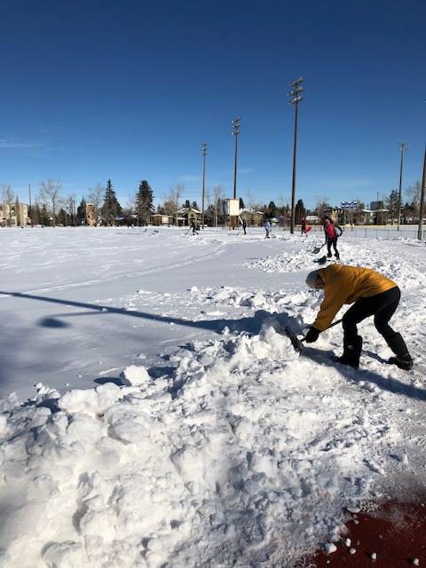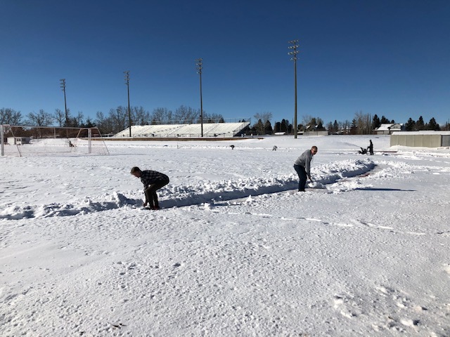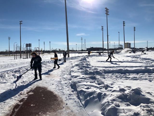 Thank you to the Caltaf, Warriors and UCAC clubs for sending volunteers to shovel and plow the snow off the track at Glenmore. We certainly made a dent in deep snow and hopefully the sun and Mother Nature will help to melt the ice that is still on it.